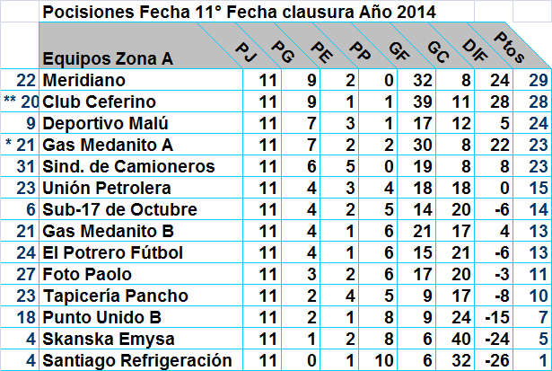 Posiciones Zona A